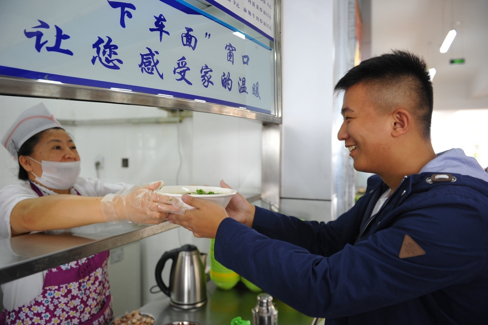 本网讯(记者 何振东)“下车面”也叫“回家面”,是我国北方的民间出行习俗,一碗香喷喷的面条为远行者接风洗尘,一根根细细的面条相当于生活中的线,也寓意着牵挂的心终于放下了。正值学校开学之际,黑河学院以一张张热情的笑脸,一句句亲切的问候,欢迎着2015级莘莘学子们的到来。为了让新生一下车就能感受到家的温暖,学校食堂开展了“一碗面”活动,为每一位新生免费送上一碗热腾腾的下车面。
