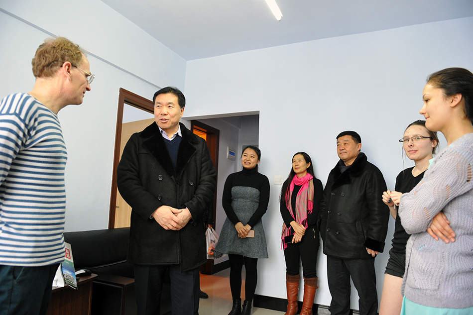 贯校长一行首先来到了国际教育学院,看望了来自荷兰、哈萨克斯坦、俄罗斯的三名留学生,并代表学校送去了慰问品。贯校长仔细询问了他们的生活情况和假期安排,叮嘱他们一定要注意安全,希望他们合理安排好假期的学习和生活,充分利用好这次在中国过春节的机会,好好感受中国传统节日的浓厚氛围,加深对中国文化的了解。