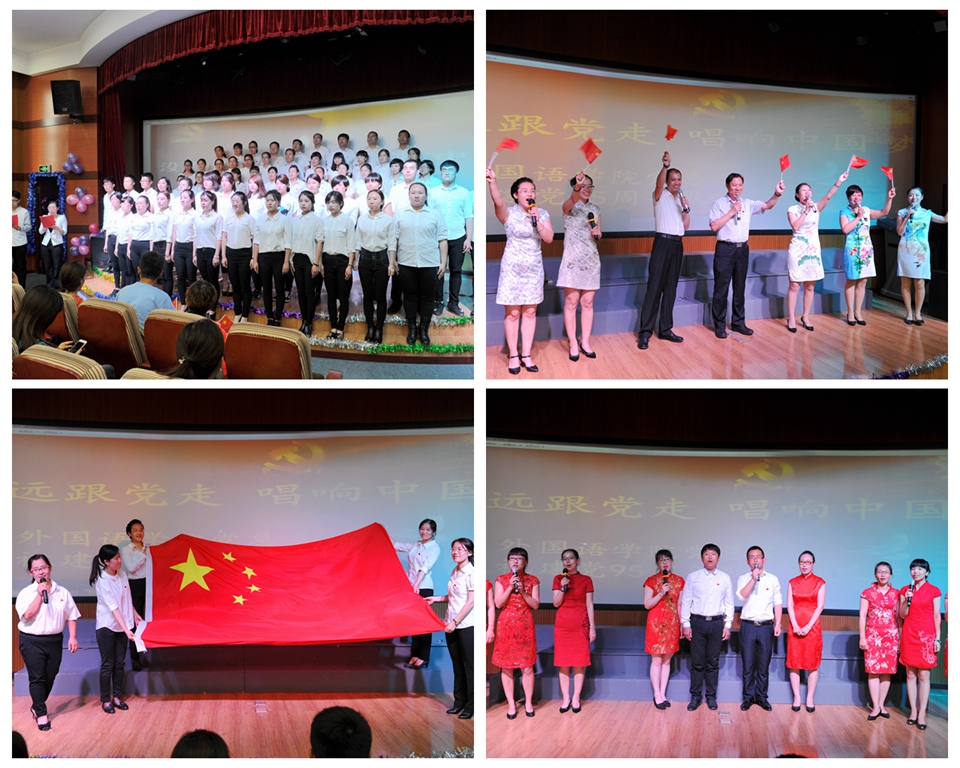 为纪念中国共产党成立95周年,紧密配合“两学一做”学习教育活动的深入开展,唱响共产党好、社会主义好、改革开放好、伟大祖国好的时代主旋律,6月22日下午,外国语学院党总支举办的“永远跟党走 唱响中国梦”庆祝建党95周年歌咏会在俄语楼小剧场隆重举行。