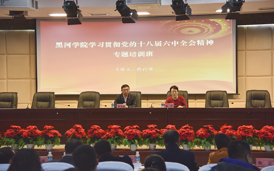 此次培训班采取自学和集中辅导相结合的方式进行,参训人员首先自学习近平总书记在党的十八届六中全会和省部级主要领导干部专题研讨班上的重要讲话,学习省委书记王宪魁在省委省管主要领导干部专题研讨班上的讲话,研读《关于新形势下党内政治生活的若干准则》《中国共产党党内监督条例》。在自主学习基础上,3月29日下午,党委书记曹百瑛作题为“旗帜鲜明讲政治 敢于担当善作为”的专题报告,与参训人员交流学习体会,并对贯彻落实全会精神提出具体要求。