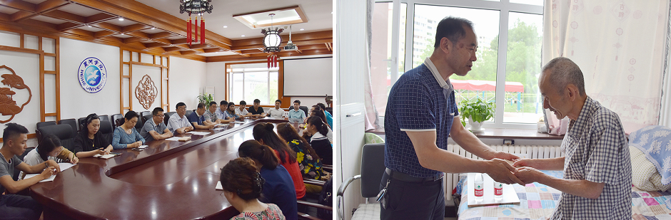 在做好“七个一”规定动作之外,学校各党总支结合工作实际,创新“自选动作”,积极探索“主题党日+”制度。在“主题党日+精准扶贫”活动中,学校领导前往老年公寓,看望退休老党员,与贫困师生党员座谈,了解他们家庭的基本情况,帮助他们解决实际困难;在“主题党日+红色经典教育”活动中,人文传媒学院举办以“缅怀先辈,讴歌时代,无私奉献”为主题的纪念活动,新老党员演唱红色歌曲,诵读红色经典诗歌,回顾中国共产党力挽狂澜的奋斗历程,深刻体会先辈们崇高的革命信仰,充分发挥红色经典教育人、引导人、鼓舞人和激励人的作用;在“主题党日+学党章知识竞赛”活动中,理学院党总支以赛促学,通过专题学习、专题辅导、专题交流、专题测试,掀起学习《党章》《准则》和《条例》的热潮,让党员们对新时期党员干部的纪律和规矩意识有了更深刻的认识,使党员们进一步增强政治意识、大局意识、核心意识和看齐意识;在“主题党日+志愿服务”活动中,美术与设计学院党总支组织学生党员到敬老院进慰问演出,到黑河市图书馆义务劳动,引导党员在关爱空巢老人和公益服务等方面发挥先锋模范作用,增强党员的责任感、使命感和荣誉感;在“主题党日+慰问短信”活动中,文化旅游学院党总支在7月1日当天向全体党员发送了“七一”慰问短信,鼓励全体党员不忘初心、不畏困难,充分发挥共产党员先锋模范作用,以实际行动促进教学、科研、学生管理等各项工作稳步推进。