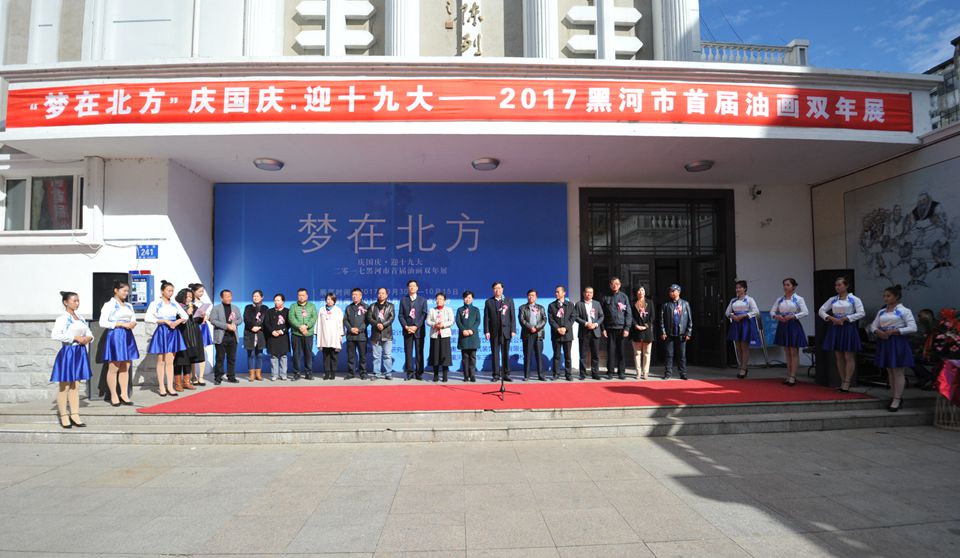 本网讯(记者 赵宇 摄影 黄金洋 刘帅)9月30日上午,由黑河市委宣传部、黑河文学艺术界联合会、黑河市瑷珲历史陈列馆、黑河学院联合主办,黑河市美术家协会、油画艺术研究会、我校美术与设计学院联合承办的“梦在北方”庆国庆·迎十九大——2017黑河市首届油画双年展在中俄艺术陈列馆拉开帷幕。