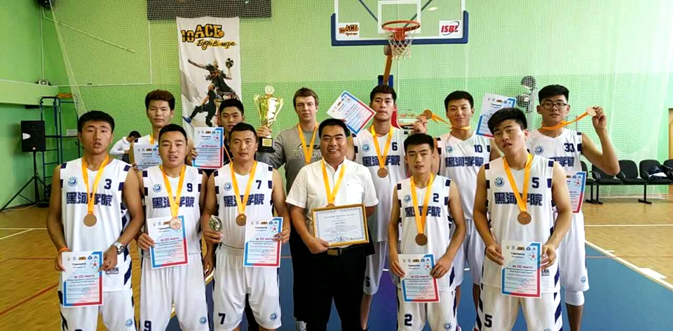 本网讯(特约记者 唐一 )近日,我校应俄罗斯比罗比詹市肖洛姆·阿莱赫姆大学邀请参加俄罗斯大学生国际体育联欢节篮球赛,与中俄两国的6所高校队伍同场竞技,我校体育学院代表队以五战三胜的成绩荣获本次篮球赛季军,体育学院索志鹏荣获最佳阵容奖,李伟明荣获最有价值球员奖。