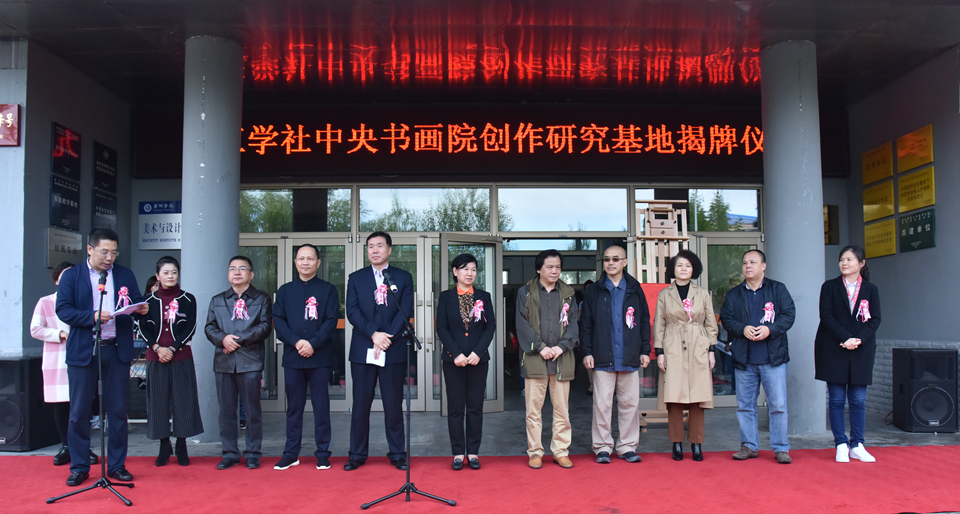 贯校长与叶培贵教授为九三学社中央书画院创作研究基地揭牌,并代表学校聘请九三学社中央书画院各位专家为我校客座教授。他在致辞中指出,九三学社中央书画院作为九三学社中央委员会的重要机构之一,自2008年成立以来,聚集了一大批在书画艺术领域有重要影响的专家、学者,打造了一支具有较高素质的成员队伍,在弘扬社会主义先进文化、繁荣书画创作、推动艺术教育等方面作出了重大贡献。他强调,九三学社中央书画院与黑河学院共建创作研究基地是两院推进深度合作、共同培养高层次艺术人才的一次重要举措。创作研究基地的建立,将为我校师生搭建起与国内知名艺术家交流与对话的平台,为师生专业学习与技法提升提供广阔的空间。他希望,我校与九三学社中央书画院能够搭建更多平台、开辟更广渠道,通过多领域的交流合作,为推动边疆艺术教育发展作出应有的贡献。