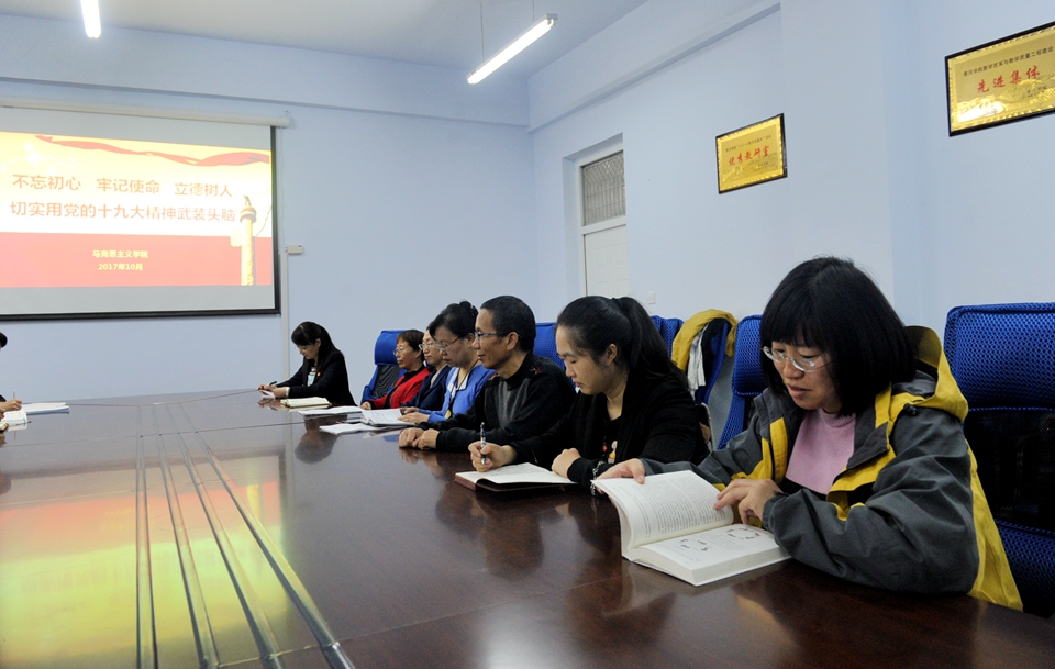 本网讯(记者 张巍 赵宇)新时代催生新理论,新理论引领新实践。习近平总书记在党的十九大报告中指出“新时代中国特色社会主义思想是全党全国人民为实现中华民族伟大复兴而奋斗的行动指南”。这一论断犹如春雷,振奋人心,催人奋进。学校马克思主义学院的教师们在第一时间收听收看十九大报告开幕会,召开集体备课会,让思政理论课教师先学一步、学深一步,推进十九大精神进教材、进课堂、进头脑,吹响坚决打赢提升思想政治理论课教学质量攻坚战的冲锋号。