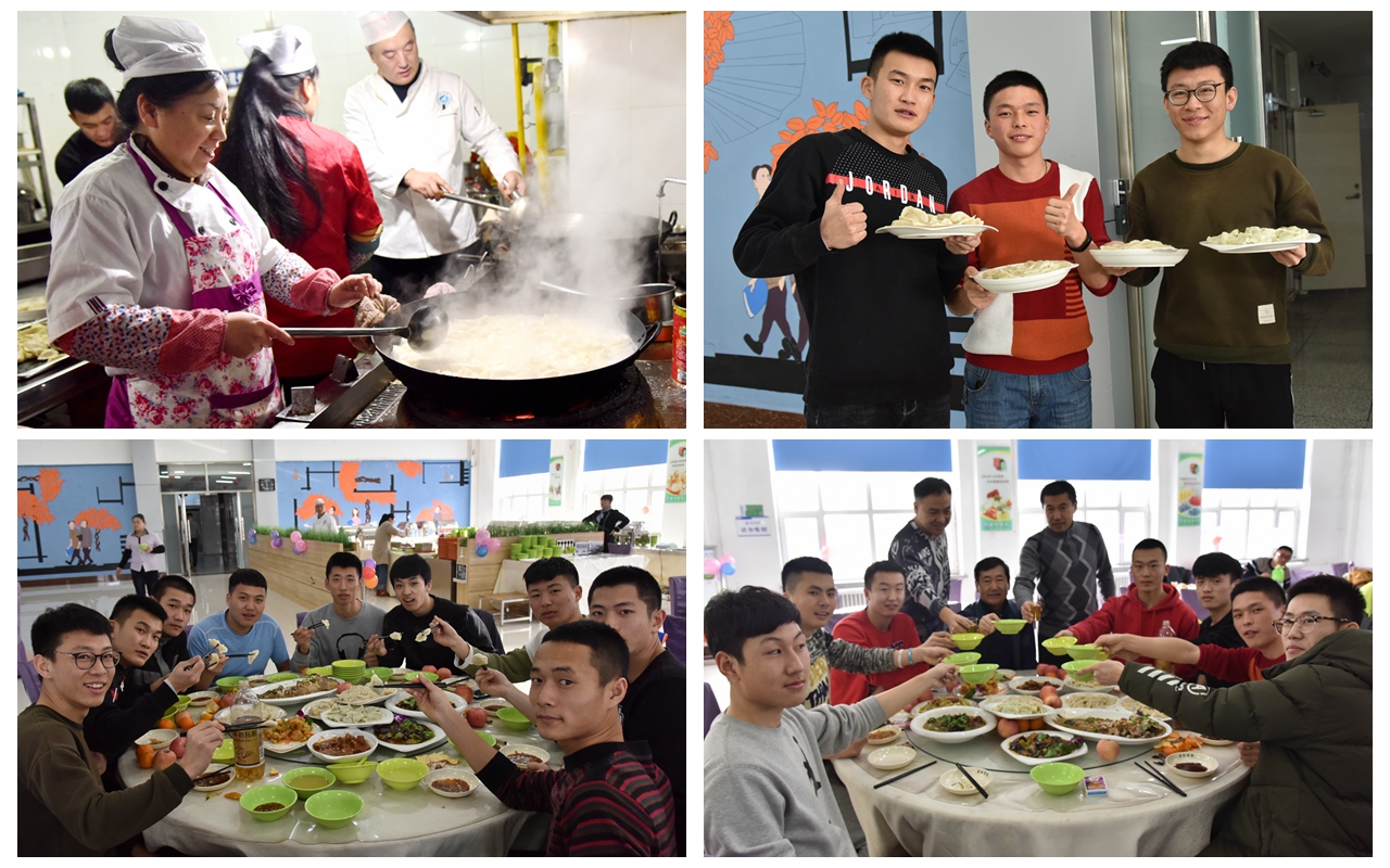 本网讯(记者 赵宇)温馨相伴同贺岁,喜庆祥和过新年。为了更好地了解、关心留校学生生活和训练情况,1月1日上午,学生工作部、后勤管理处餐饮服务中心、体育学院教师一同与寒假留校备赛黑龙江省第二届学生冬季运动会的30余名体育学院学生欢聚一堂,包饺子,叙家常,共度元旦佳节。