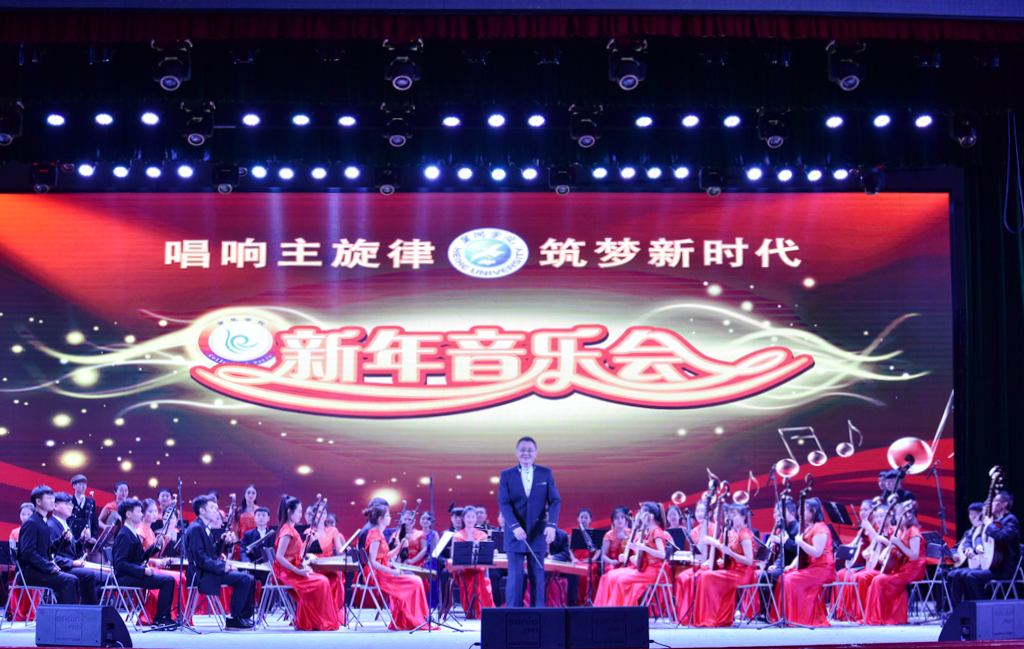我校“新年音乐会”自2005年开始举办,在音乐学院师生的辛勤努力下,得到了社会各界的热烈欢迎和广泛好评,已成为学校丰富的校园文化活动中一道靓丽的风景。整场音乐会跨越古今,涵盖中西,师生们共同演出,纵情歌唱,曼妙轻舞,用形象生动的艺术语言传递美好的新年祝福,表达全校师生共谱学校发展建设新篇章的豪迈热情。