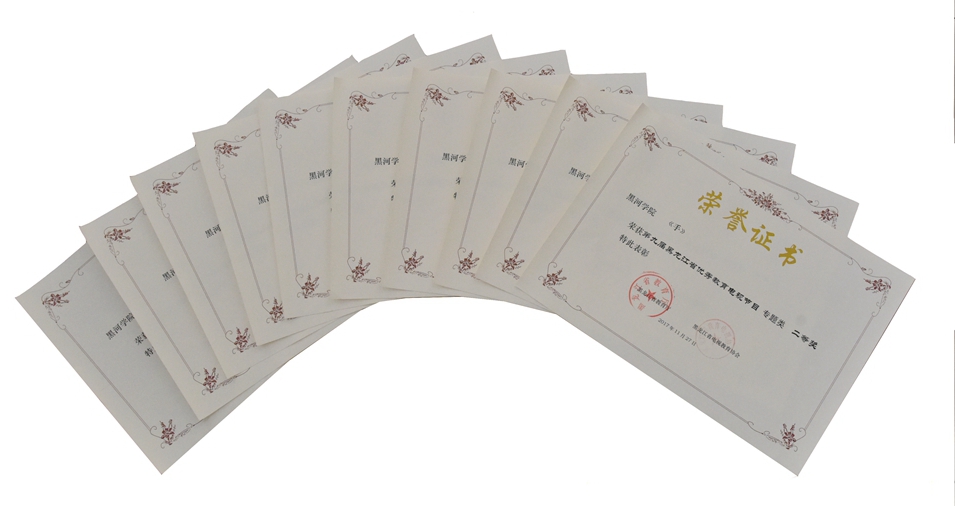 在省教育厅、省教育电视协会组织评审的“第九届黑龙江省优秀教育电视节目”中,我校选送的视频作品共荣获一等奖2项,二等奖3项,三等奖5项。其中《兰亭序》获综艺类一等奖、《百分之一》获新闻类一等奖。此外,我校30部作品在第二届黑龙江省大学生网络文化节活动中喜获佳绩,微视频作品《手机风波》《你不懂》《迷失的焦点》《手》荣获了省教育厅、省委宣传部、省高校工委联合组织评审的“第二届黑龙江省大学生网络文化节微电影大赛”一等奖;《青春校园无暴力》获第二届黑龙江省大学生网络文化节动漫大赛二等奖;《传文化精神承中国之风》《一点点》获第二届黑龙江省大学生网络文化节公益广告大赛视频类一等奖。常文硕、包学敏、田恩学、王颖获优秀指导教师奖。