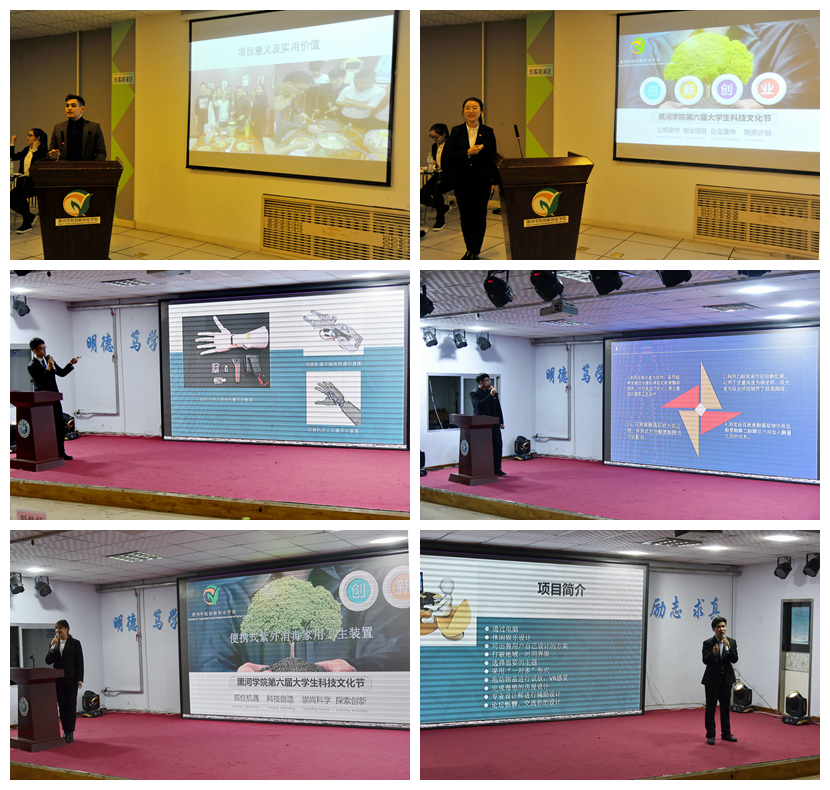 我校大学生科技文化节集科技创新、文化创意、新兴创业诸元素于一体,既激发学生的创新创业意识,又锻炼了学生的表达能力,同时,为我校学生搭建了创新创业和社会实践的平台,展现了大学生崇尚科学、锐意创新、勇于实践的精神风貌和青春风采,得到广大师生的一致赞许,逐渐成为我校科技文化节中一张闪亮的名片。黑河学院大学生科技文化节至今已举办六届,学生科技立项794项,入驻实践基地项目26项,孵化学生创业实践项目5项,涉猎科技研发类、商业服务类、文化培训类、信息技术类四类项目。先后共有300余人参与国家级、省级创新创业赛事,2017年获批省大学生创新创业训练计划项目70项,获得省财政经费支持45万元;在中俄大学生创新创业实践中心建设项目中获批省级共享型创新创业实践基地,共争取省级建设资金300余万元;荣获黑龙江省第五届“挑战杯”、黑龙江省第三届“建行杯”互联网+大赛、第八届哈尔滨大学生创业大赛优秀组织奖。