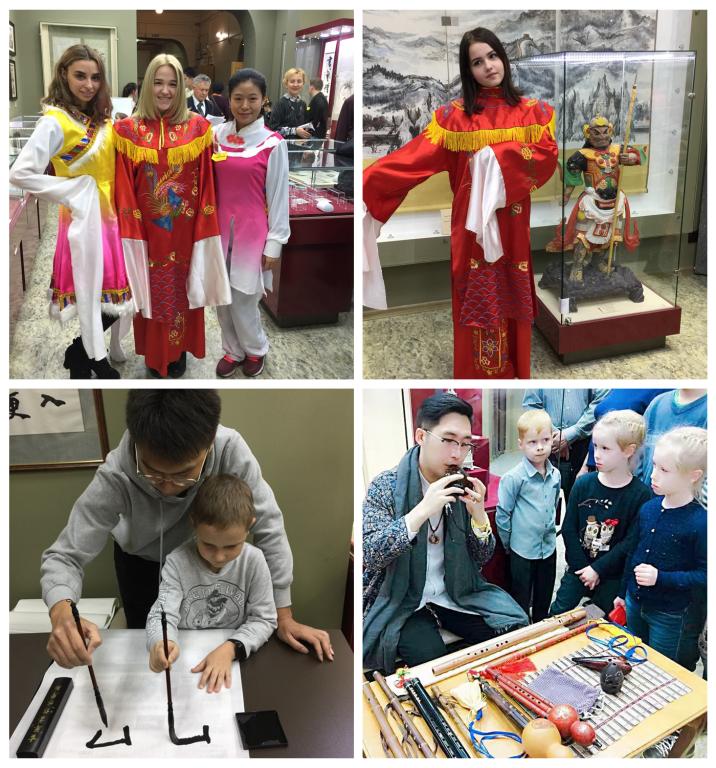 在俄罗斯布拉戈维申斯克市庆祝“国际博物馆日”之际,我校与布拉戈维申斯克国立师范大学共建的孔子学院联手阿穆尔州地质博物馆举办“艺术之夜”传统文化展示活动,当地的俄罗斯文化传承代表展示了彩碗制作、套娃绘图、手编、金属冶炼等一系列俄罗斯传统手工艺;孔子学院教师讲解、演绎传统乐器典故、文房四宝来历、太极拳精神,与近千名市民和中国文化爱好者共同感受中俄传统文化魅力。