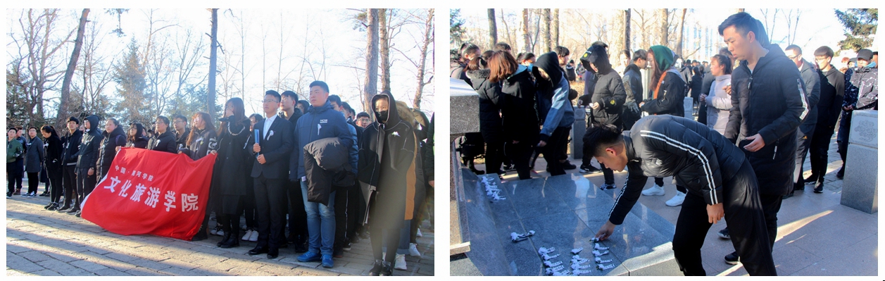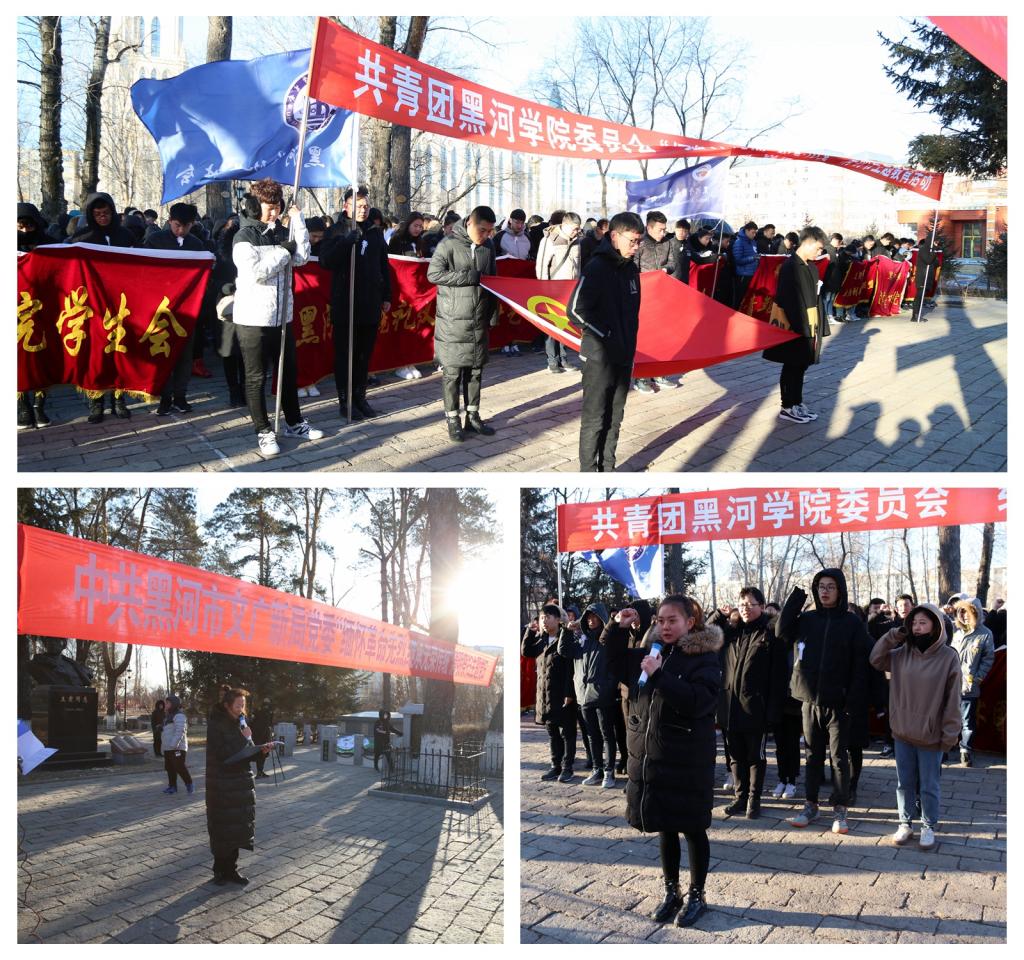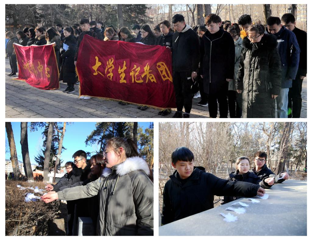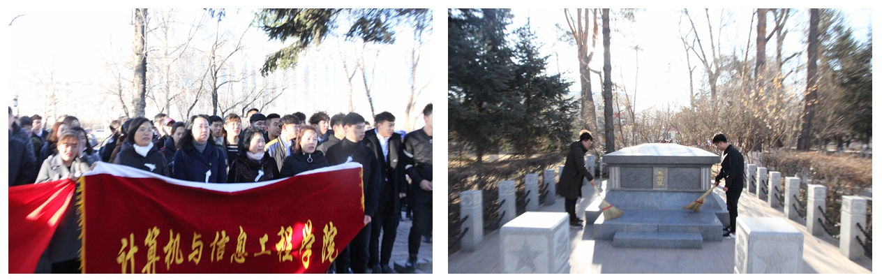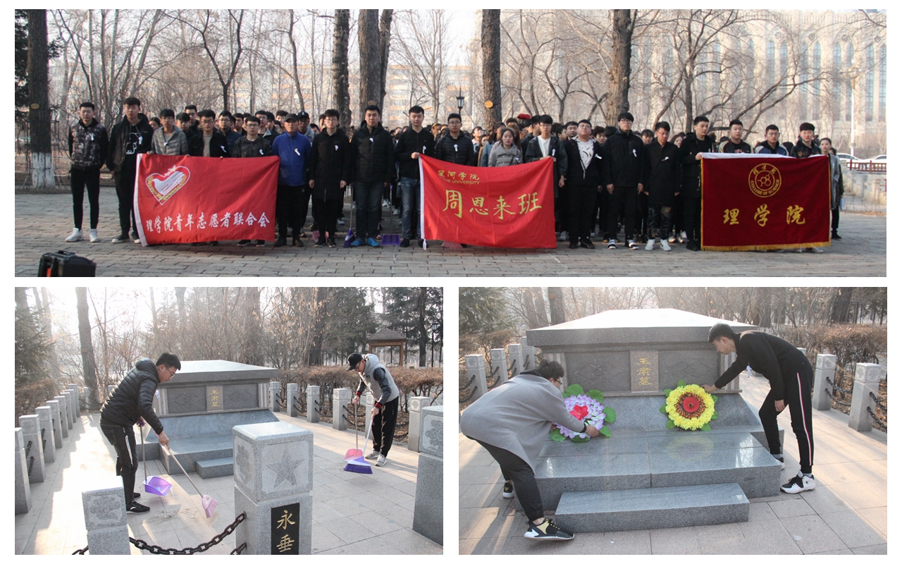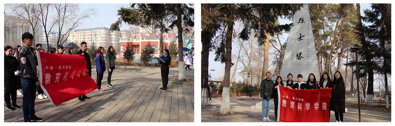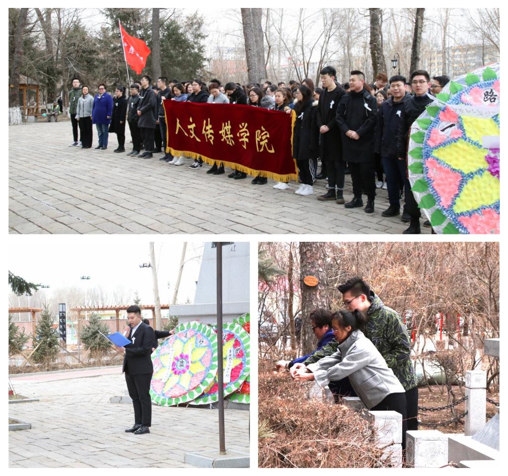 4月1日,理学院师生在黑河市烈士陵园举行扫墓活动,同学们手举院旗、会旗整齐列队,向烈士敬献花圈,肃立默哀,表达对先烈的敬意和哀思。同学们纷纷表示,将牢记光荣的革命传统,珍惜来之不易的幸福生活,勤奋进取,为美好时代贡献力量。