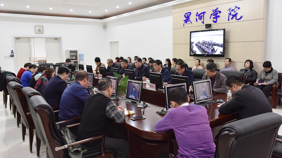 本网讯(特约记者 王琳 摄影 赵宇3月27日下午,2018年度全省教育系统全面从严治党和深化作风整顿视频会议在哈尔滨召开。省委高校工委书记、省教育厅党组书记、厅长赵国刚出席会议并讲话。校在明德楼二楼会议室设立分会场,校长贯昌福,副校长张焕强、车永宏,纪委书记董贵杰,副校长许海深、丛喜权,党委委员、总会计师、财务处处长宁艳杰,党委委员、组织部部长邹辉,各部门、各学院相关负责人及纪检监察处全体人员参加会议。