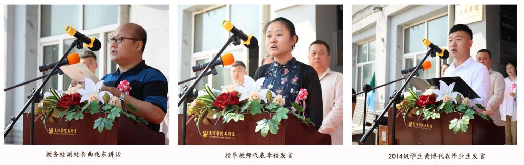 黑河市文联主席车义在致辞中指出,黑河学院美术与设计学院自成立以来,在扎实开展专业素质教育的同时致力于艺术创作和中俄美术交流、参与地方艺术活动,成果显著,有力地推动了黑河文艺事业的发展。希望各位老师能够不断发挥自身潜力,培养出更多更好的艺术人才,各位同学在老师的指导下,刻苦努力,创作出更多传播当代中国价值观念、体现黑河地域特色的优秀作品。