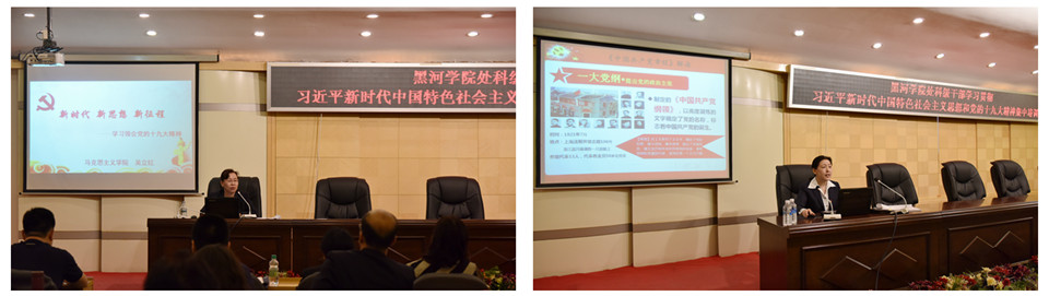 在为期5天的培训中,马克思主义学院姜丽萍教授和吴立红教授分别作“《中国共产党章程》解读”和“新时代、新思想、新征程——学习党的十九大精神”专题辅导讲座,对习近平新时代中国特色社会主义思想的丰富内涵、党的十八大以来党和国家事业发生的历史性变革、中国特色社会主义进入新时代的重大意义等方面进行了详细深入的解读。