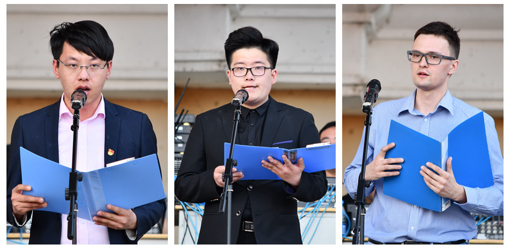 我校中外师生代表在发言中对公安机关为广大师生全力营造安全和谐的学习生活环境和公安民警的辛苦付出表示衷心感谢。随后,八名教职员工代表学校接受了黑河市公安局向我校捐赠的警棍、钢叉、防刺背心、头盔、防割手套、催泪喷剂、抓捕器等安全防护装备。