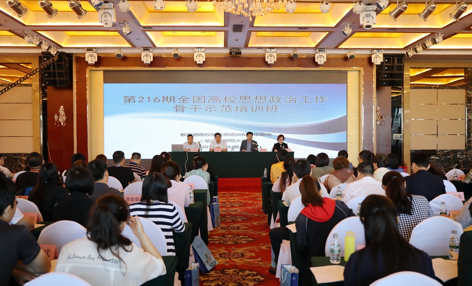 本网讯(记者 赵宇 摄影 程旺)6月20日,由教育部思想政治工作司主办、教育部高校辅导员培训和研修基地(哈尔滨师范大学)承办、我校协办的第216期全国高校思想政治工作骨干示范培训班在黑河市举行。来自全国20个省(区、市)百余所高校的130余名思想政治工作骨干参加培训,共同研修管理育人与辅导员综合素质发展。我校党委委员、副校长张焕强,教育部高校辅导员培训和研修基地(哈尔滨师范大学)主任王福兴、副主任杨桂兰和孙俊峰出席开班典礼。开班典礼由副主任孙俊峰主持。
