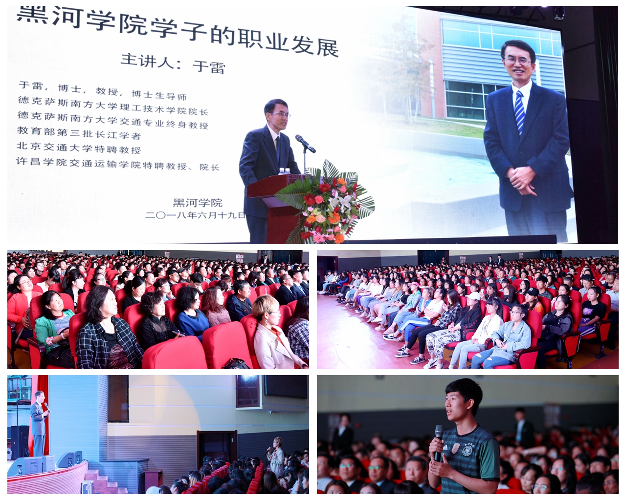 作为我校引进的首位长江学者,也是从黑河走出去的高端人才,于雷教授在聘任仪式后做客北疆讲坛,为师生们作了题为“黑河学院学子的职业发展”专题讲座,并与部分教师代表进行座谈交流。于教授首先从自己与黑河及黑河学院的渊源谈起,以诙谐幽默的语言分享了自己的学习工作经历,通过大量的生动事例解答了学生们在未来职业发展中可能会遇到的诸多问题,让学生对于职业的选择、职业的规划等问题有了新的认识,明确了自己该如何规划有意义的人生。