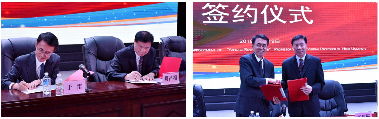 会上,校长贯昌福与于雷教授签订聘用协议,并为于雷教授颁发聘书。
