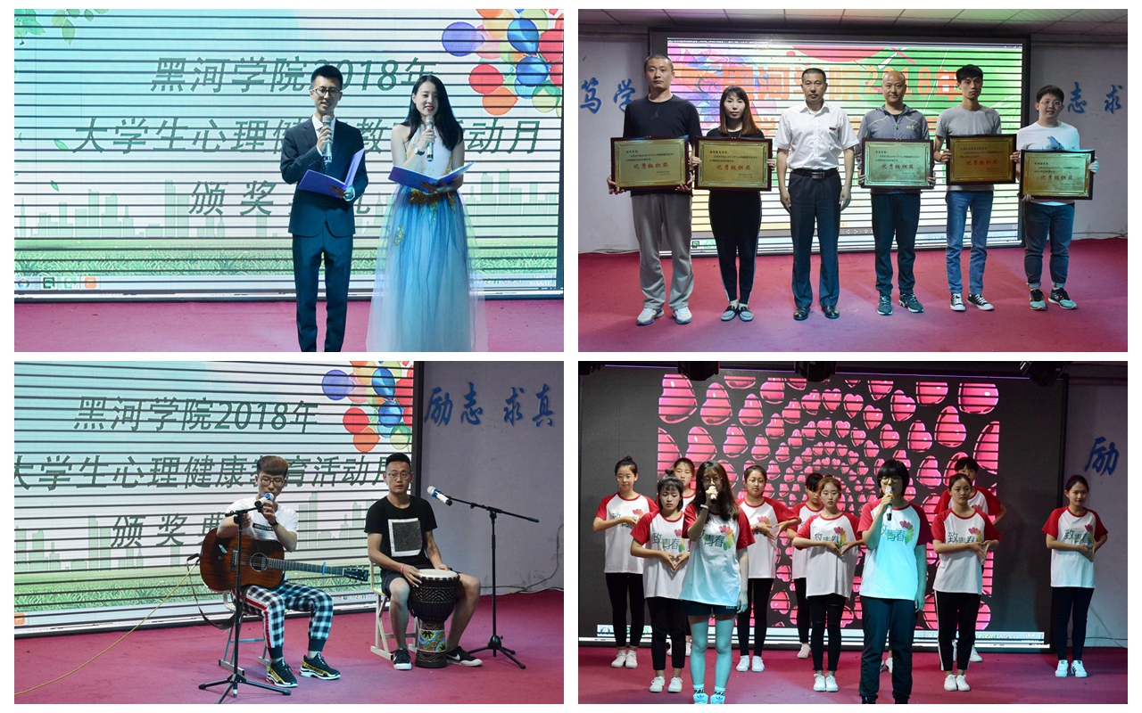 本网讯(特约记者 王希顺 摄影 张磊)为了进一步普及心理健康知识,提高学生心理健康水平,增强学生的心理保健意识,由学生工作部大学生心理健康教育咨询中心主办,各学院心理辅导站协办的以“关爱心灵成长共建和谐校园”为主题的第十一届“5.25”大学生心理健康教育活动月于5月9日正式启动。在为期一个月的活动中,开展了团体心理辅导、心理委员培训、心理班会、心理成长训练营、心理游园会、专家讲座、团体素质拓展训练、校园心理情景剧大赛等19项形式多样、寓教于乐的心理活动,6000多名学生参与其中。6月13日,第十一届“5.25”大学生心理健康教育活动月在润德楼小礼堂举行闭幕式,至此,本次活动圆满落下帷幕。