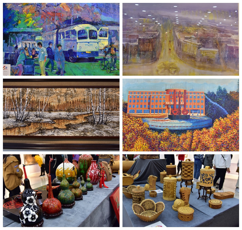 本次展览共展出油画、中国画、书法、陶艺、漆艺、纤维、现代刻字、桦树皮等师生优秀作品百余件,作品题材多样、内容丰富、主题鲜明、富有时代气息。制作精美的漆画、淡逸劲爽的中国画、惟妙惟肖的手工工艺品、宣传片、师生作品集、学生创业故事、优秀学术著作,充分展现了我校师生蓬勃的艺术激情、旺盛的艺术创造力、丰富的艺术想象力和学生勤勉努力、勇于探索的专业成果。