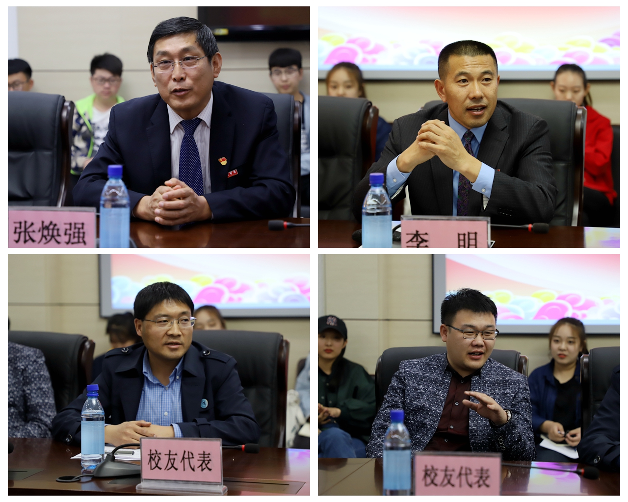 校友们追忆往日求学时光,讲述校园点滴故事,分享成长历练经验,畅谈母校未来发展,校园里发生的每一件往事都让校友们如数家珍。2006届装饰艺术设计专业校友陈慕楠是学校较早创业的学生,他创办的起航研究生辅导教育机构已运营5年,在分享了自己的创业经历后,他非常激动的说:“刚才去自习室看见埋头苦读的学弟学妹,特别欣慰。今年学校设立了硕士研究生考试考点,这是母校事业发展的一个标识,希望学校在不久的将来能够建立起硕士研究生培养计划和培养体系。”
