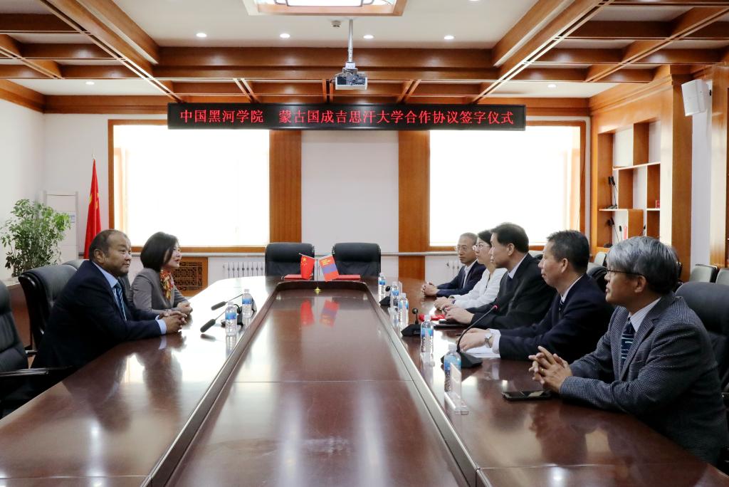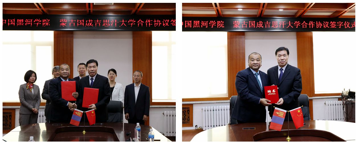 9月19日,中国黑河学院与蒙古国成吉思汗大学合作协议签订仪式在明德楼三楼会议室隆重举行。蒙古国成吉思汗大学校长拉布嘎苏荣,我校校长贯昌福、副校长丛喜权、科研处处长宁艳红、远东研究院名誉院长王禹浪、远东研究院院长谢春河参加签约仪式。仪式由副校长丛喜权主持。