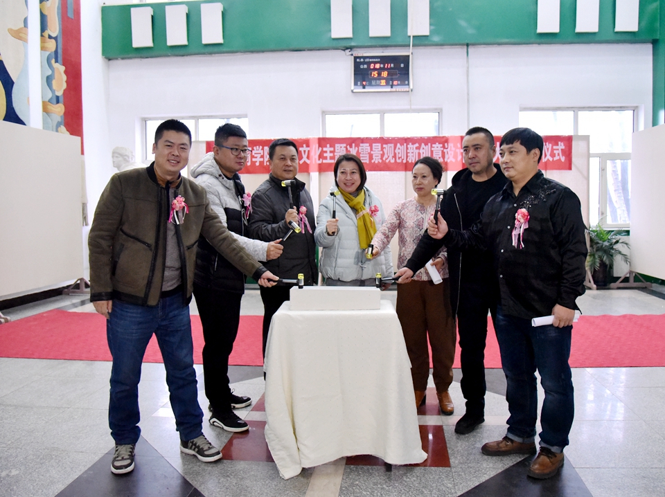 本网讯(记者 赵宇 特约记者 白云涛)11月9日下午,首届红色文化主题冰雪景观创新创意设计制作大赛——暨百人艺术实践大比拼在美术楼1号楼大厅拉开帷幕。教务处、校团委、美术与设计学院相关负责人参加开幕式。