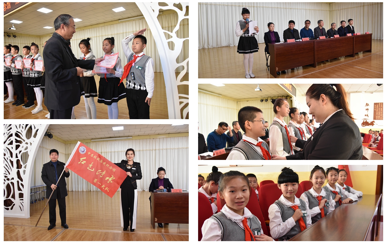 会上,远东研究院院长谢春河教授为首批评定为优秀的小讲解员颁发荣誉证书,中苏抗战历史纪念馆馆长崔继舟为黑河学院附属小学授“红色传承”旗帜,爱国者社团讲解员为附属小学第二批讲解员佩戴中苏抗战历史纪念馆胸牌。