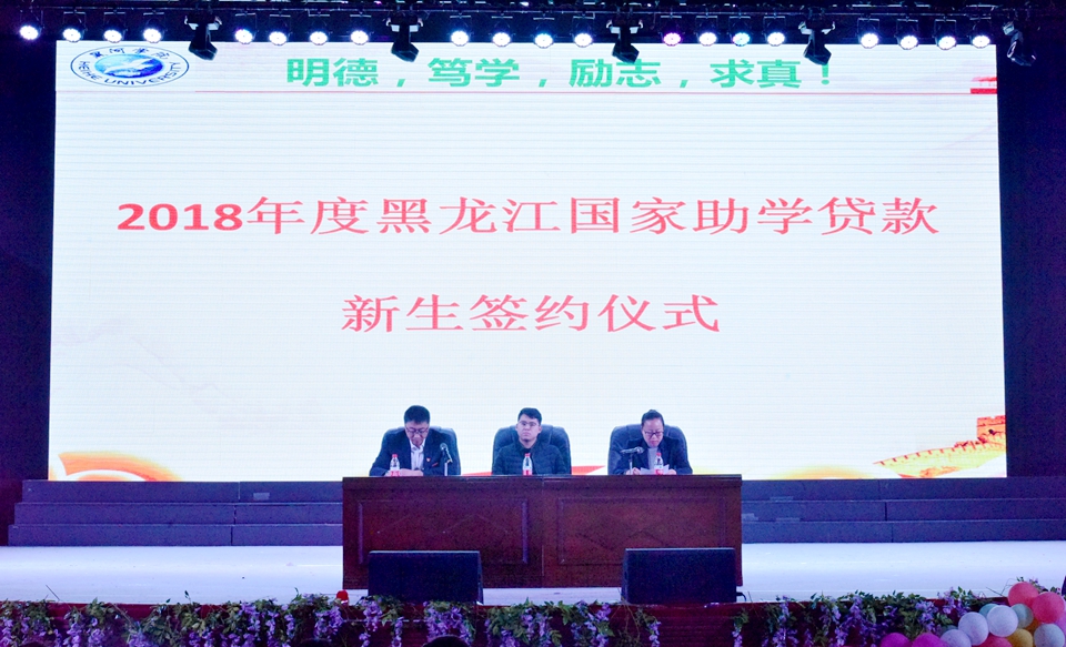 本网讯(特约记者 包宇 摄影 关月)11月1日,学校在明德楼礼堂举行2018年学生助学贷款合同签字仪式。华安保险公司、学生工作部相关负责人及申请黑龙江省国家助学贷款学生参加活动。