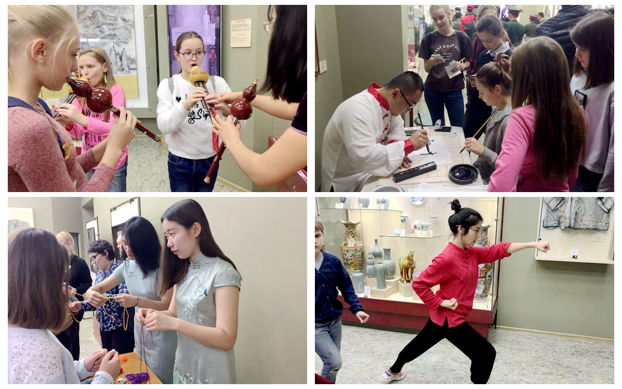 11月4日,黑河学院与俄罗斯布拉戈维申斯克国立师范大学共建的孔子学院助力阿穆尔州地质博物馆开展的“艺术之夜”活动。近千名俄罗斯市民和中国文化爱好者走进阿穆尔州地质博物馆亲身感受中俄传统文化魅力。