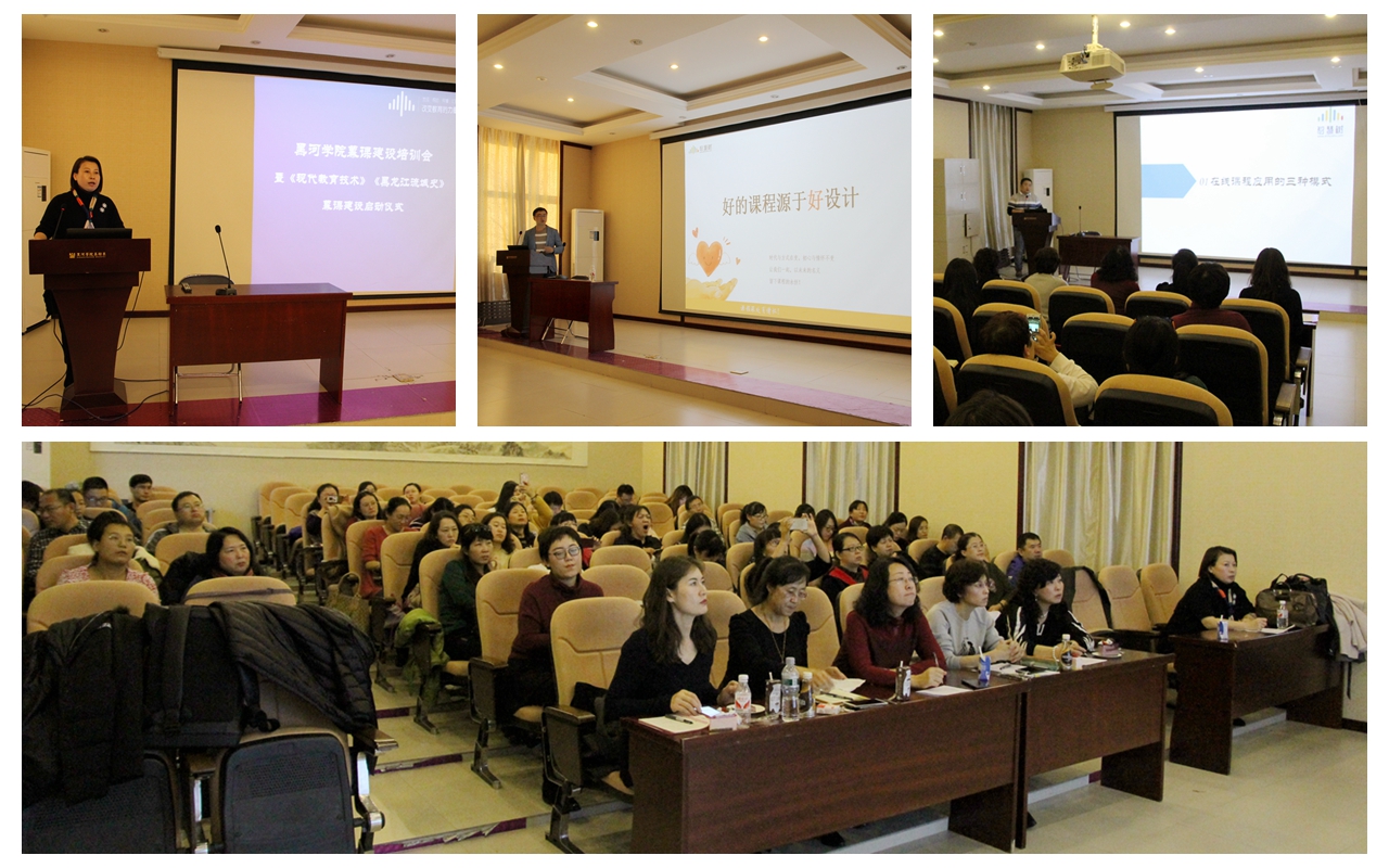 培训会上,智慧树网黑龙江省课程总监、课程开发经理、课程运行维护工程师,分别围绕如何制作一门精品慕课、什么是翻转课堂、在线课堂的运用模式等问题进行详细讲解,现场教授教师如何利用平台资源进行混合式教学,并就教师们提出的问题进行了一一解答。