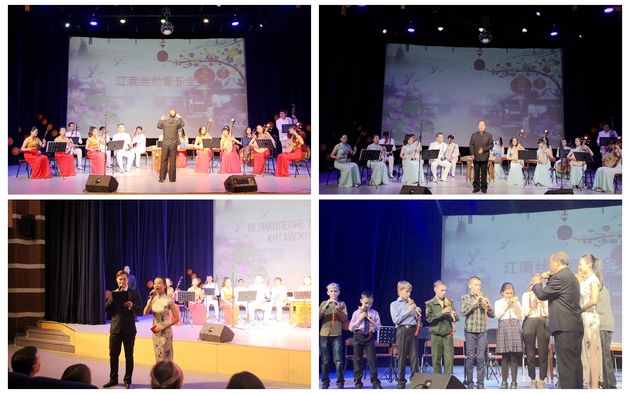 本网讯(特约记者 王晓梅)10月16日,由孔子学院总部/国家汉办主办,苏州大学、我校与俄罗斯布拉戈维申斯克国立师范大学共建的孔子学院联合承办的“风华国乐”江南丝竹专场音乐会在阿穆尔州社会文化中心成功举办,吸引了四百余名观众前来欣赏、聆听这场音乐盛宴。