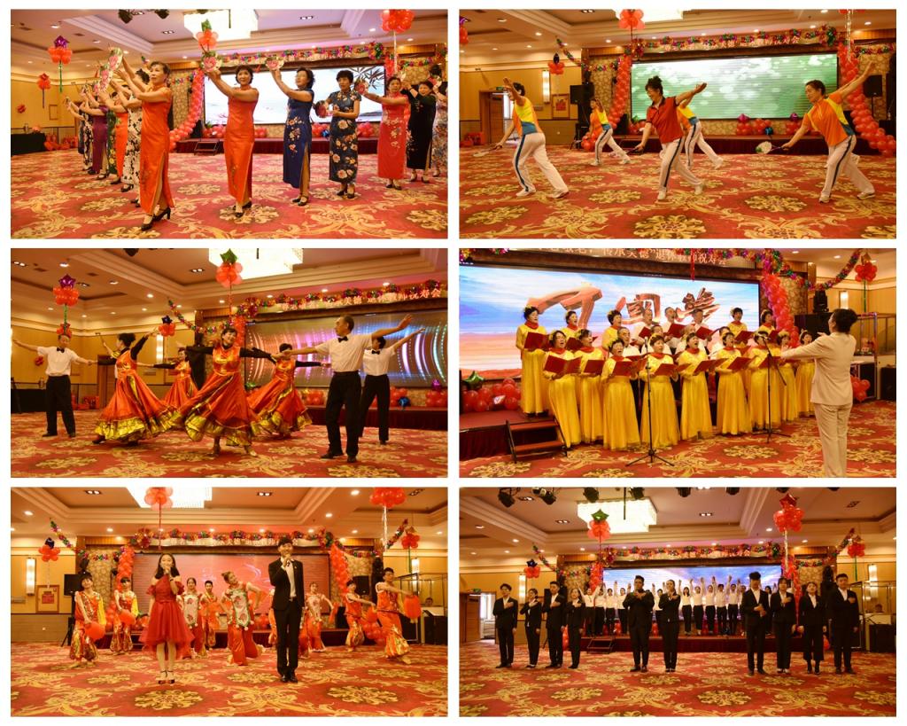 在随后的祝寿演出中,离退休工作处人员、老教师们表演了精彩的节目,有优美的舞蹈《浪漫的草原》,有充满民族风情的乐器演奏《友谊地久天长》,有魅力十足的旗袍走秀表演,有搞笑幽默又富有正能量的三句半《赞今朝》,还有催人奋进的大合唱《歌唱祖国》《没有共产党就没有新中国》。音乐学院师生、大学生艺术团的成员们也带来了精心准备的节目,为老同志们送上节日的祝福。