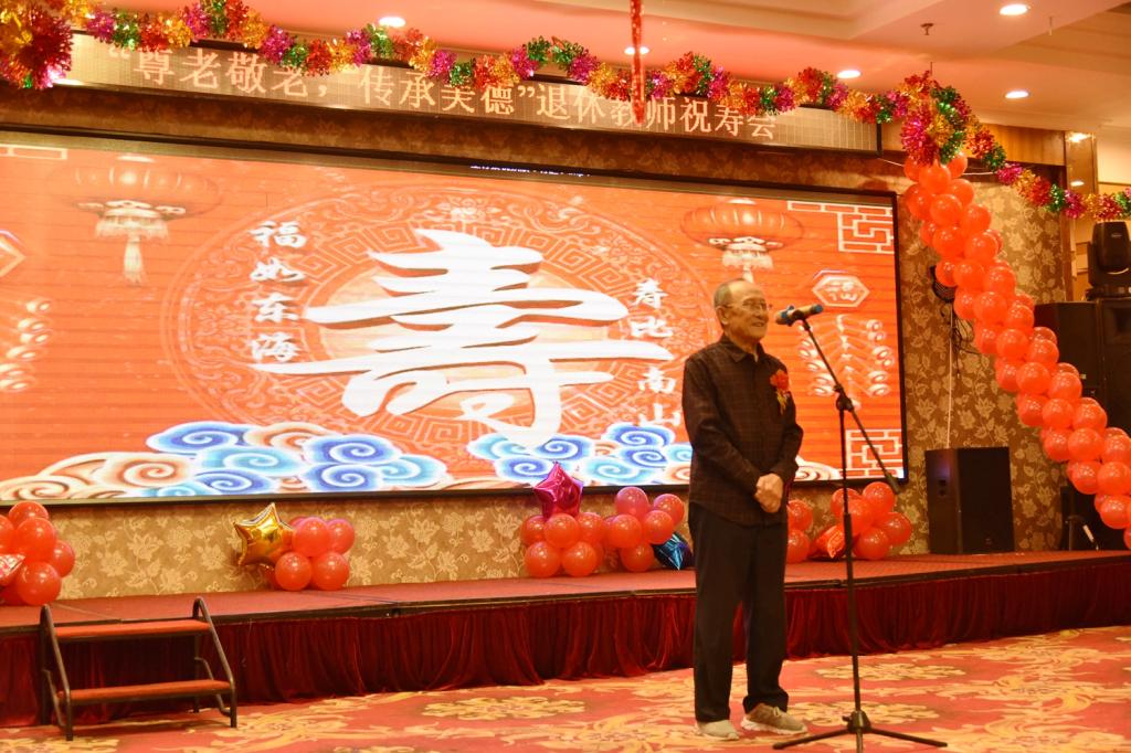 学校对离退休教职工的关心和照顾,使老同志们感受到学校大家庭的温暖,老寿星代表孙长友用自创的七字歌表达了激动的心情:“重阳祝寿盛会开,兴安龙水载歌来,弹指莫言桑榆晚,耄耋校园留情怀。”
