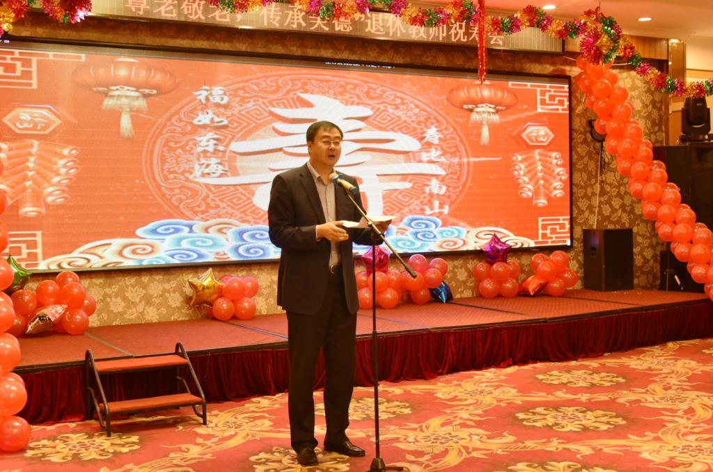 祝寿会上,党委书记王刚代表全校师生向离退休老领导、老教师致以节日的问候,他说,离退休老同志是党和国家的宝贵财富,是促进社会和谐的重要力量,更是青年一代奋发向上的榜样。全校师生要大力弘扬尊老爱老的传统美德,主动关心老同志、时常挂念老同志,尽可能地为老同志办实事、做好事、解难事,让广大老同志得到真正的实惠,进一步提高老同志的幸福指数。