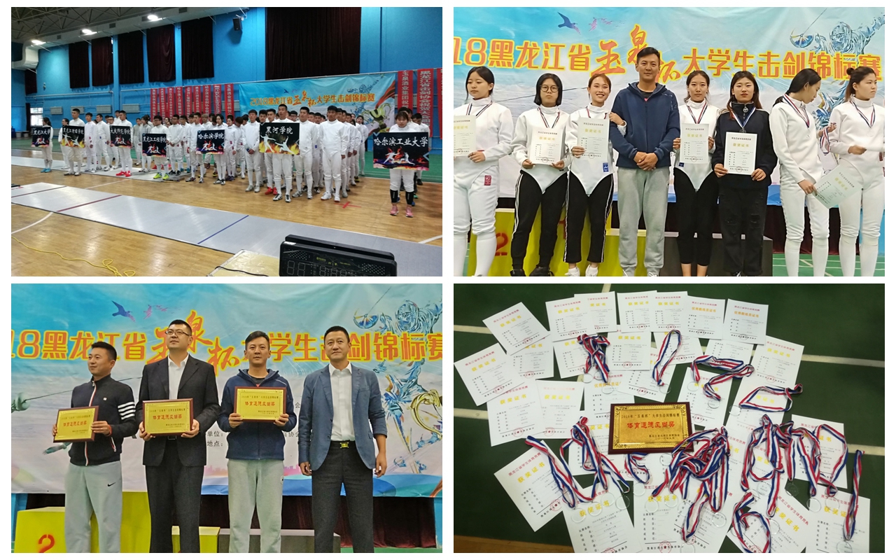 经过两天的激烈比拼,我校击剑队在比赛中取得优异成绩,共获得五项冠军,四项亚军,六项季军,黑河学院被授予“体育道德风尚奖”,指导教师范锐获得“优秀教练员“称号。