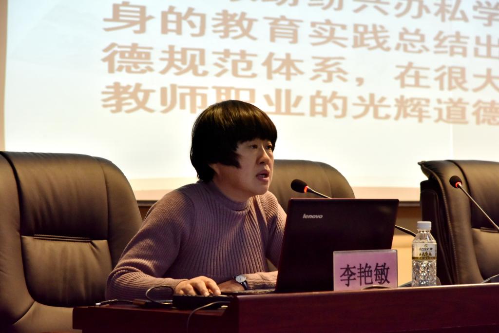 本网讯(特约记者 王佳 摄影 关月)12月19日下午,学校在求知楼报告厅举办师德师风专题培训。教育科学学院李艳敏教授作题为《教师职业道德简析》的专题讲座。