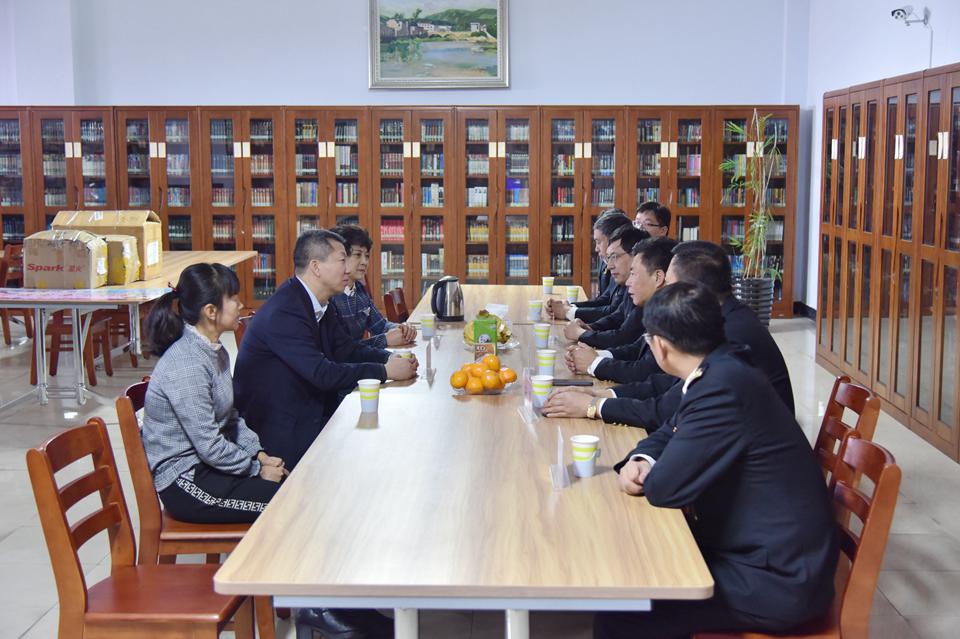副校长丛喜权代表学校接受黑河海关赠书并合影留念;张有才局长一行在图书馆相关负责人的陪同下参观了我校新建图书馆。