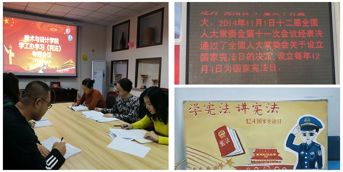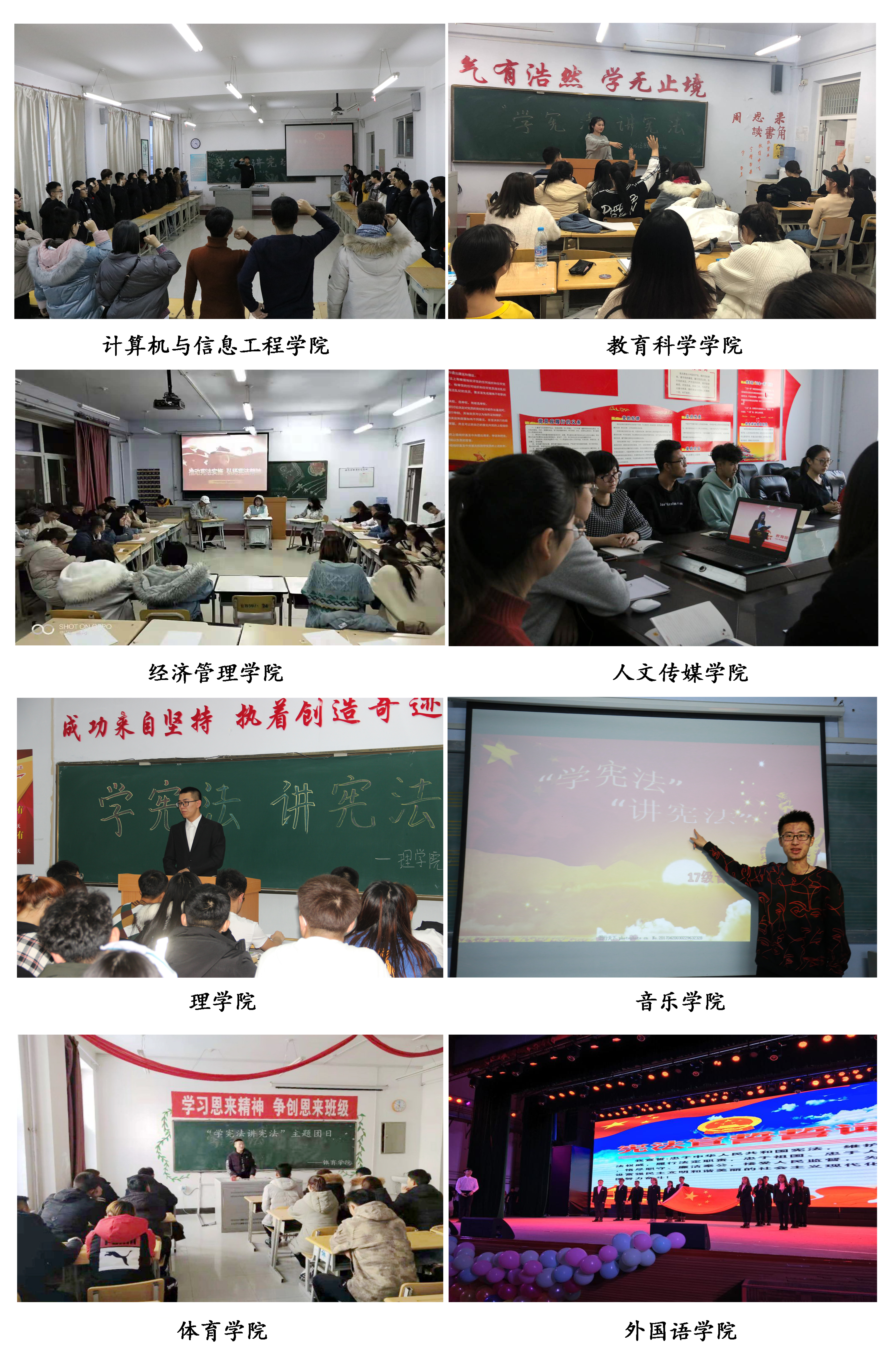 党委宣传统战部充分利用校报、宣传栏、官方微信平台等舆论阵地,设立学习专栏、推送普法知识,营造学习宣传宪法的浓厚氛围;党委组织部下发副处级以上干部宪法法律知识考试的通知,发放了宪法法律知识考试复习资料,组织宪法法律知识考试,通过学习和考试达到“以考督学、以考促学、学用结合、学以致用”的效果;学生工作部组织各学院开展“学宪法 讲宪法”主题班会,宣讲“国家宪法”意义、观看宪法知识宣传教育视频和宪法宣誓,晨读宪法条款,利用板报、电子屏宣传宪法精神,传递“依宪治国”“依宪执政”理念,增强了新时代大学生“尊重宪法、宪法至上”的意识,培育法治信仰,争做懂法守法爱法用法的新时代青年。