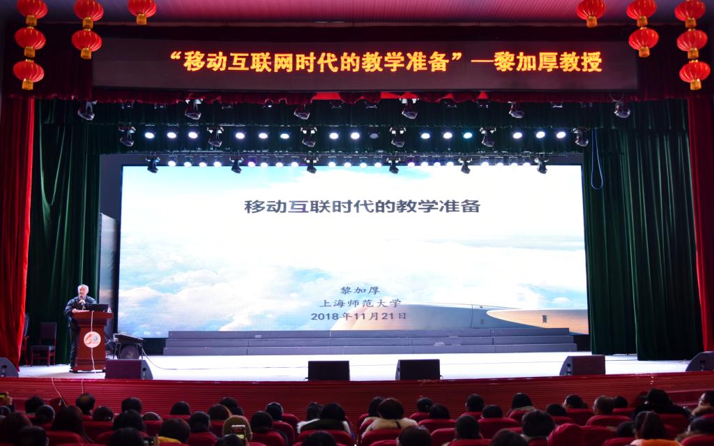 本网讯(特约记者 王佳 摄影 关月 张陈)11月21日下午,应学校邀请,教育部教育信息化专家、上海师范大学教育信息技术系主任黎加厚教授来到我校举办题为《移动互联网时代的教学准备》的专题讲座。学校全体专任教师、部分学生代表共计八百余人参加了讲座。