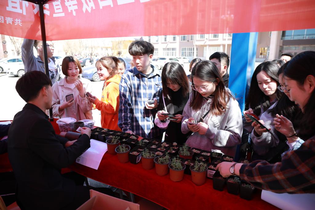 “种下希望,开往春天。在这个万物复苏的春天,每天清晨伴着阳光和可爱的多肉一起醒来,是不是很让你心动呢?快来领养萌萌哒的多肉吧。”活动现场,同学们已排起长队,前来领选自己喜爱的绿植。“我想体验植物种子满满长大的生命力量,同时,也为寝室增添一抹绿色……”同学们纷纷拿出二维码进行扫码领取绿植,并用手机上网查询这些绿植的名称及种植方法。