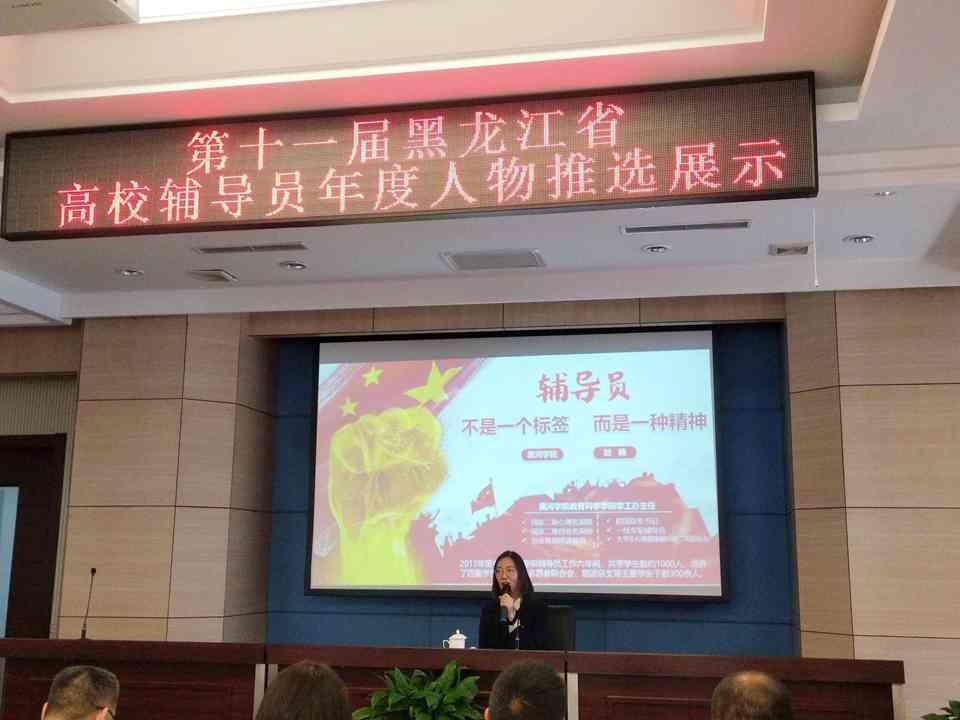 本网讯(记者 赵宇)近日,由黑龙江省委教育工委、省教育厅主办的“第十一届黑龙江省高校辅导员年度人物推选展示”活动结果揭晓,我校辅导员胡楠老师,表现出色,荣获“黑龙江省高校辅导员年度人物入围奖”。