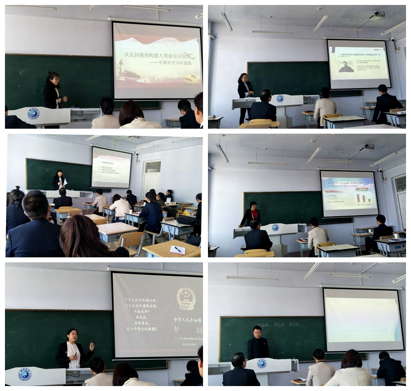 参赛的6位青年教师围绕中华人民共和国走过的70年风雨历程从“坚持中国特色社会主义道路”“伟大复兴中国梦”“总体国家安全观建设”“中国外交风云变幻”等不同角度,采用专题教学方式,结合视频影像、问答等方式,声情并茂地开展课堂教学。比赛结束后,马克思主义学院院长姜丽萍对教风教态、教学思路与教学设计、教学方法、教学手段等进行了点评,并提出建设性意见。