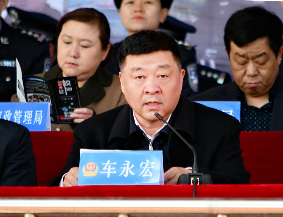 副校长车永宏在讲话中首先代表学校向全市校园安全风险防控工作各有关单位表示感谢,他指出,近年来,全市反恐成员单位、公安、应急等职能部门始终坚持安全发展这一“红线”和“底线”,认真按照各自工作职责,精心组织实施,形成了各司其职、齐抓共管的工作格局,实现了连续多年黑河学院安全“零事故”的好成绩。尤其是公安系统各警种切实把学校安全工作放在突出位置,不断加大警力投入,提升保障水平,深入开展“护校安园”“警灯闪烁”活动,在维护校园周边治安和交通秩序、加强对学校消防安全检查等方面作出了大量卓有成效的工作,切实为保障师生安全、营造安全校园环境起到了保驾护航的作用。他强调,做好校园安全管理具有极端重要性和现实紧迫性,学校将积极配合黑河市校园安全风险防控工作,各部门领导将严格落实“一岗双责”,时刻保持头脑清醒,绷紧弦、铆足劲,切实提高政治站位,牢固树立安全发展的理念,强化安全责任体系建设,盯重点、强弱项,全力确保学校安全稳定;要牢固树立“安全第一、预防为主”的意识,强化日常管理,切实把安全防范作为重中之重,坚决杜绝麻痹、松懈思想,做到防患未然。