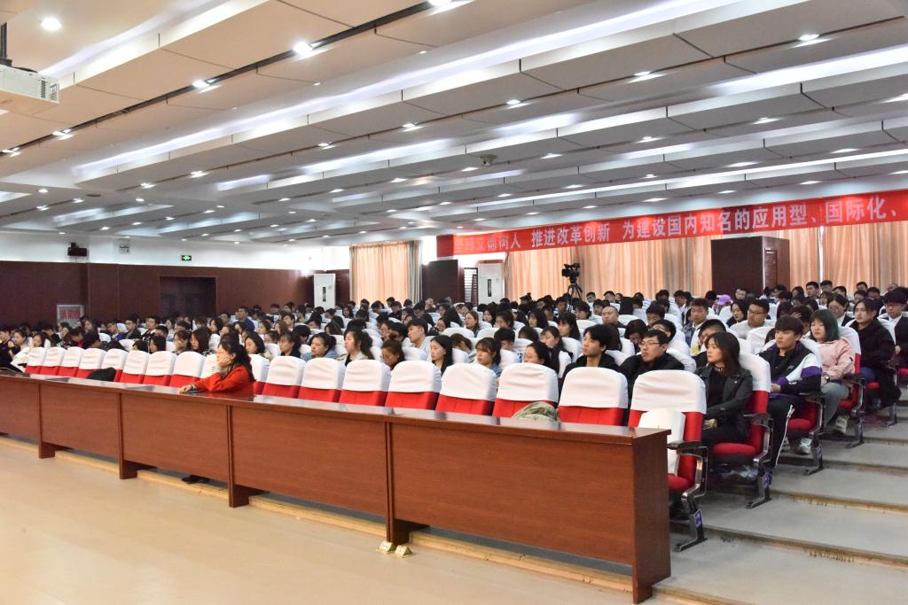 本网讯(特约记者 潘潇 摄影 程旺 吴越洋)为做好2019年西部计划招募宣传动员工作,鼓励我校毕业生报名参加大学生志愿服务西部计划,4月12日下午,学校特邀新疆自治区团阿勒泰地委副书记李晓宇一行几人组成的西部计划志愿者宣讲团,在学校求知楼报告厅举行“西部志愿行奉献新时代”2019年大学生志愿服务新疆专项优秀事迹巡回宣讲会。共青团黑河市委副书记孙建龙;学校副校长张焕强,招生就业处处长杜英,学生工作部部长李明,校团委书记王福军、副书记赵晓娜,各学院辅导员及2018届毕业生代表400余人参加宣讲会。宣讲会由校团委副书记赵晓娜主持。