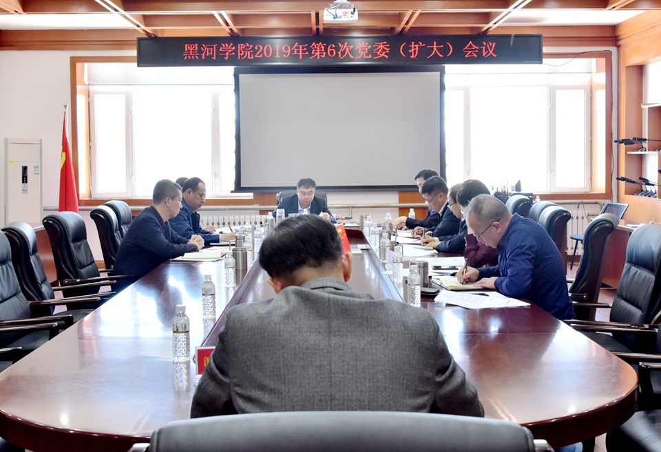 本网讯(记者 赵宇 摄影 关月)4月11日,学校在明德楼三楼会议室召开2019年第6次党委(扩大)会议。会议听取了关于学校冰球馆与综合体育馆建设情况汇报,讨论通过了《黑河学院合同管理规定(修订)》《黑河学院党政领导班子成员工作分工》,并对其他工作事宜进行了深入讨论研究。党委班子成员、相关部门负责人参加会议。