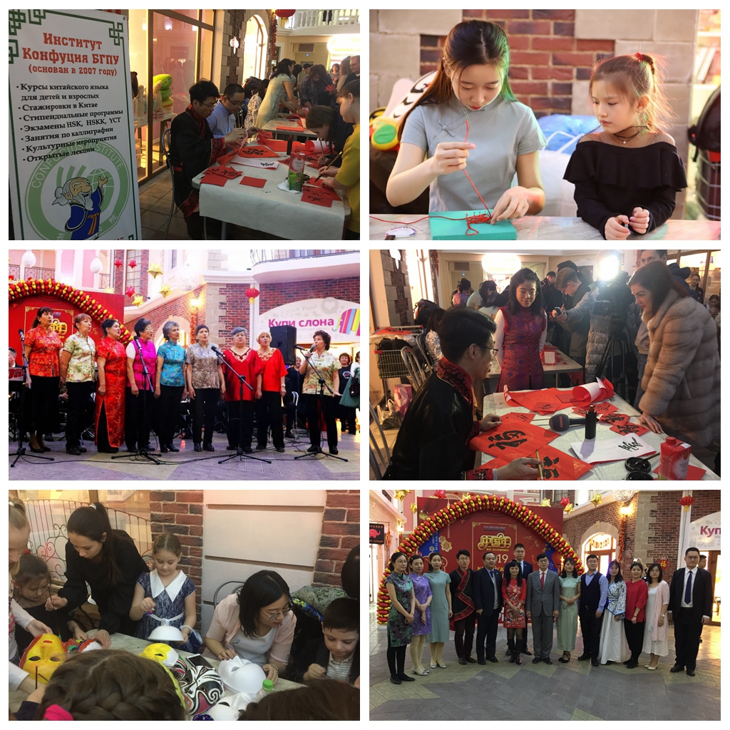 本网讯(特约记者 王晓梅)当地时间1月27日15点,由黑河市委宣传部主办,黑河学院与布拉戈维申斯克国立师范大学共建的孔子学院、黑河市边境文化之窗承办的“丝路欢聚·中国年”在俄罗斯布拉戈维申斯克市群岛购物广场举行。