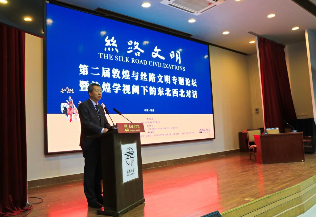 本网讯(特约记者 柳青)作为2019年在我校举办的“首届丝绸之路视域下东北与西北高端论坛”的延续。10月8—13日,由中国中外关系史学会、中国宗教学会、中国社会科学院世界宗教研究所、敦煌研究院共同主办的“第二届敦煌与丝路文明专题论坛暨敦煌学视阈下的东北西北对话”大型学术研讨会在甘肃省酒泉市敦煌研究院召开。来自中国社会科学院、北京大学、清华大学、黑河学院等八十余所国内外高校和科研单位的一百四十余位学者参会。我校副校长、中国中外关系史学会副会长丛喜权教授代表中国中外关系史学会和黑河学院致辞,我校远东研究院名誉院长、中国中外关系史学会副会长兼中外文化交流史学会会长王禹浪教授作题为“东北地区发现的丝绸纺织品与东北亚丝绸之路”的大会主旨报告;我校远东研究院院长谢春河教授主持了分会场学术研讨,我校参会教师谢春河、吴博、王天姿在研讨会上发表了参会论文。