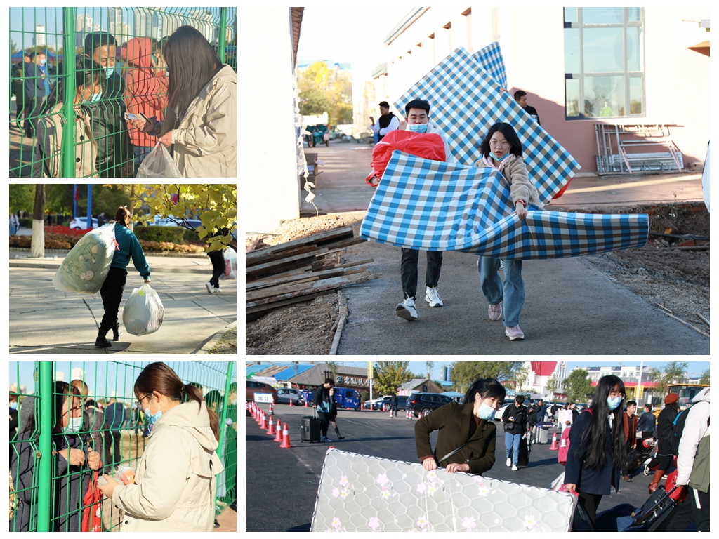 学校专门制定新生报到疫情防控工作方案,依法、科学、精准抓好校园常态化疫情防控,落实“一扫二消三测四核”制度,确保校园安全,为学生安全保驾护航。新生们在师生志愿者和工作人员的帮助引导下搬运行李,完成检测体温、出示健康码及录取通知书等流程,审核通过后有序走进期待已久的北疆校园,办理报到手续。