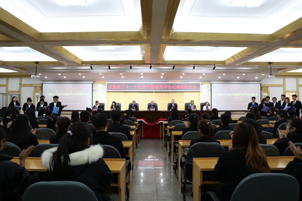 本网讯(实习记者 周春晓 摄影 徐式余)11月9日,党委宣传统战部在明德楼五楼多功能厅举办庆祝全国第二十一个记者节暨优秀学生记者表彰大会。党委委员、宣传统战部部长王书武,学生工作部部长刘铁钢、校团委负责人姜辉及宣传统战部相关科室人员和大学生记者团、新媒体中心、校史展厅讲解员学生代表参加会议。会议由宣传统战部新闻中心副主任赵宇主持。